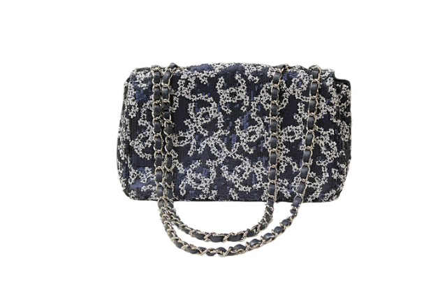 Chanel coco Mark sequin CC Flap bag Blue and White