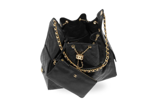 Chanel Handbag 25 Black Large Grained Calf Skin & Gold Tone