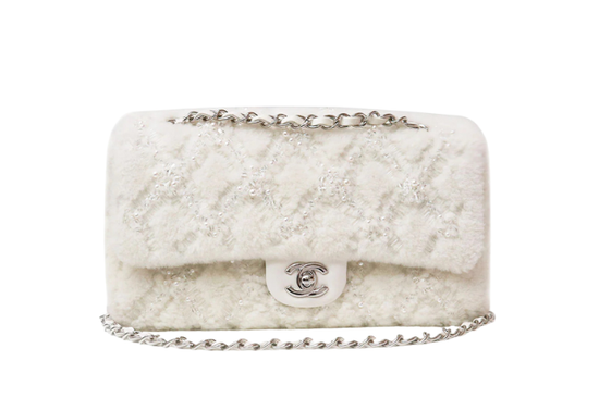 Chanel Matlesse Frap Shoulder Bag Mutton and Lambskin Leather Pearl and Beads White PHW