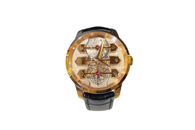 Indulge in luxury with the Girard Perregaux Tourbillon. Expertly crafted with three elegant gold bridges, this timepiece exudes sophistication and exclusivity. The exquisite details of this watch are reminiscent of fine art, making it a true masterpiece for any collector. Experience the ultimate in timekeeping with Girard Perregaux.