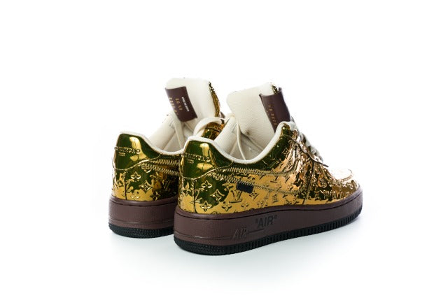 Louis Vuitton x Nike Air Force 1 Metallic Gold Monogram Leather Sneakers