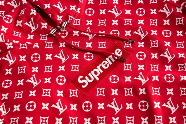 The Supreme x Louis Vuitton Box Logo Red Hoodie is the ultimate fusion of luxury and streetwear, offering a bold and iconic statement piece for any fashion-forward individual. Made from high-quality fleece, this hoodie ensures both style and comfort, making it perfect for the cool autumn days leading up to Halloween.