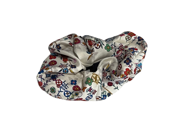 Introducing Lv x TM Superflat Monogram Chouchou, the ultimate accessory for those who appreciate luxury and art. This exquisite white scarf features the iconic "TM" design, representing a collaboration between Louis Vuitton and Takashi Murakami. Elevate your style and make a statement with this exclusive piece.