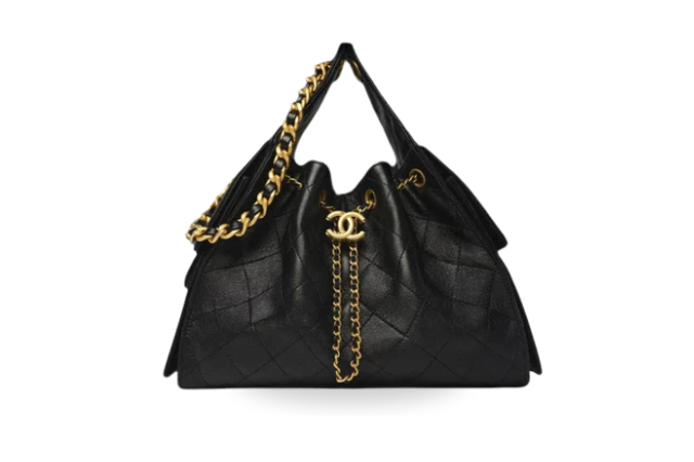 Chanel Handbag 25 Black Large Grained Calf Skin & Gold Tone