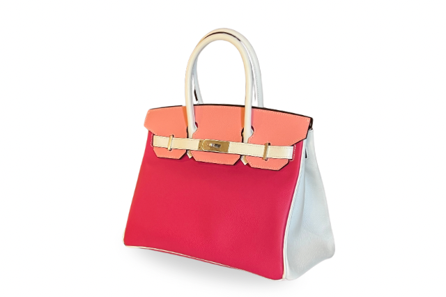 Hermes Birkin 30 Tricolor Epsom Rose Tyrian / Roze Azalee / White