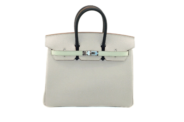 Introducing the Hermes Birkin Tricolor 25, a limited edition piece exuding luxury and sophistication. Made with Griper, Vert Fizz, and Graphite Epsom leather, finished with silver hardware and a W stamp, this handcrafted bag is a true work of art. Elevate your style with this exclusive piece.
