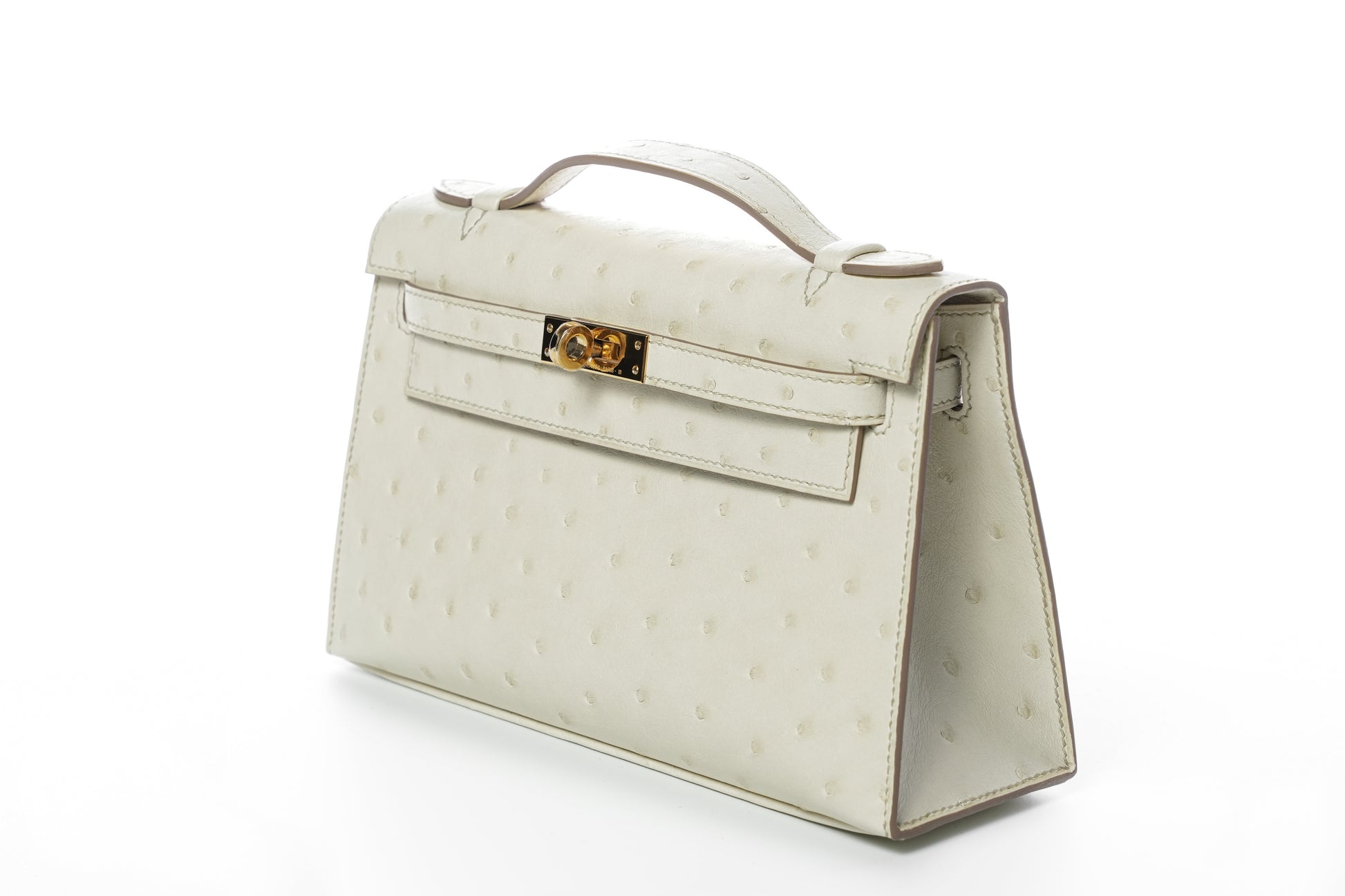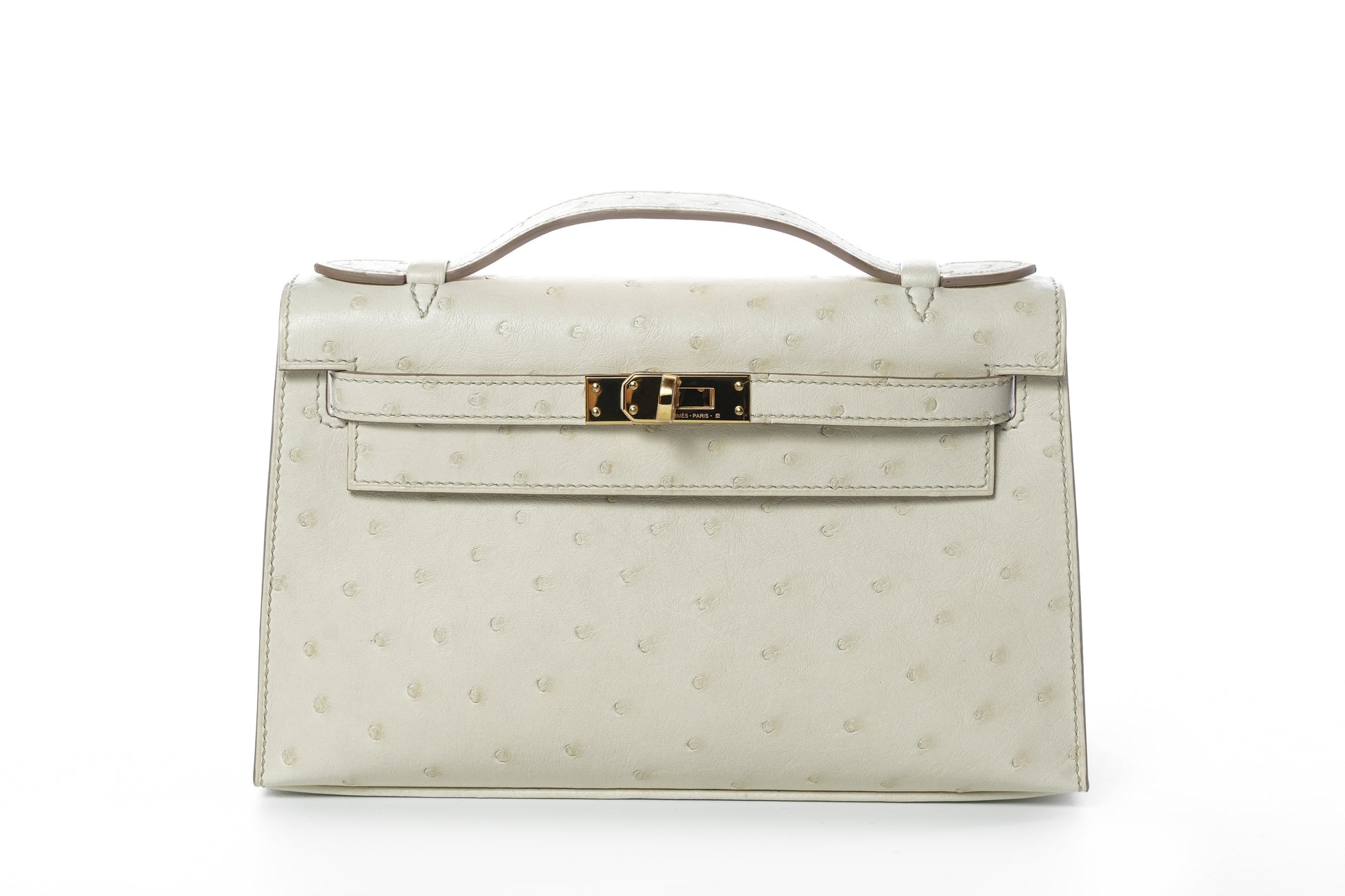 Hermès Kelly 22cm Pochette Ostrich Beton