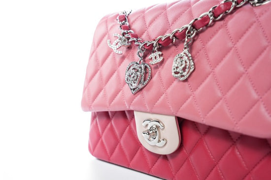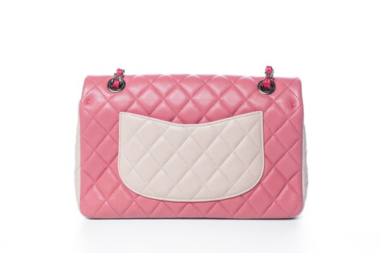 Сумка Chanel Multi-Pink из стеганой кожи ягненка, классическая, с одним клапаном, с подвеской, серебряная фурнитура, средний размер, 2014 г.