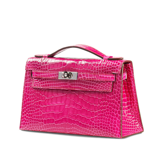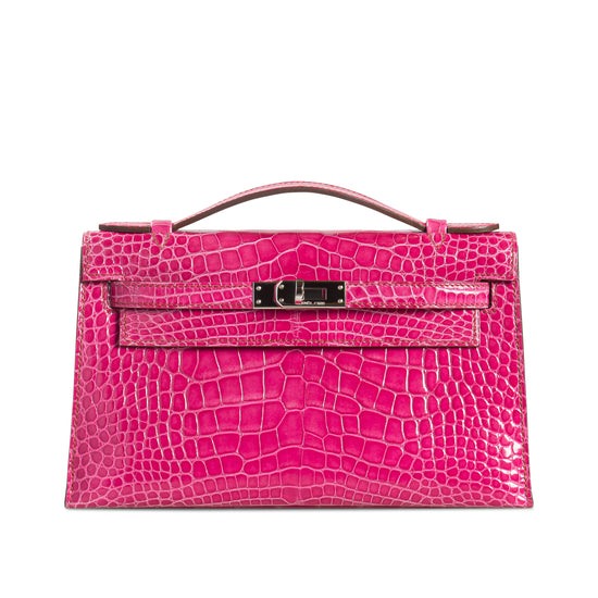 Hermes Kelly Pochette Alligator Rose Scheherazade